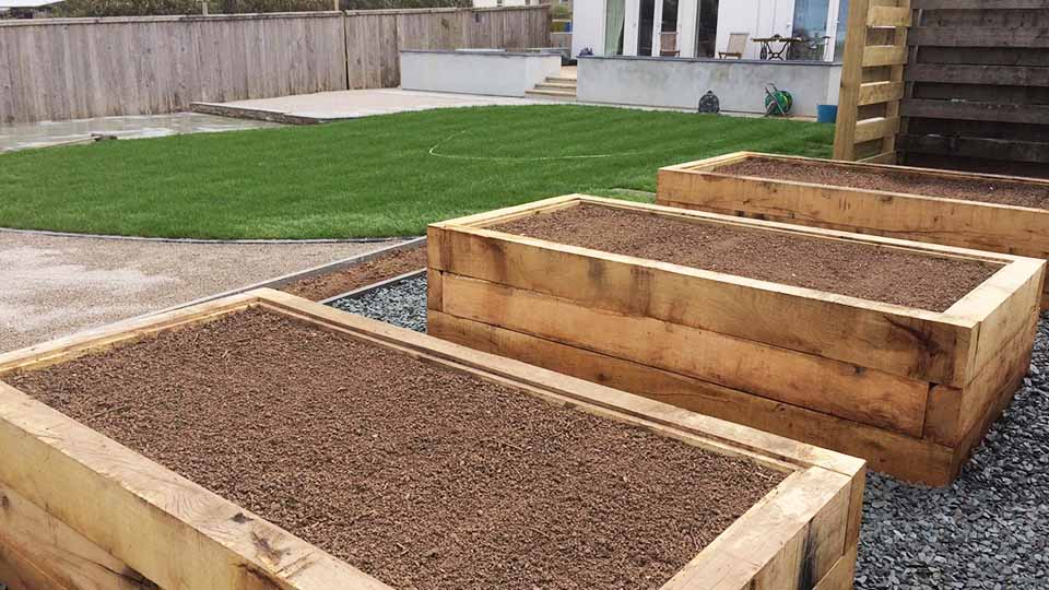 A blank canvas makeover with a design brief for patio seating area,a raised vegetable garden and zen raking platform from which to enjoy the stunning views of St.agnes.